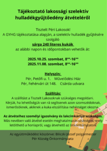 TÁJÉKOZTATÓ LAKOSSÁGI SZELEKTÍV HULLADÉKGYŰJTŐEDÉNY ÁTVÉTELÉRŐL